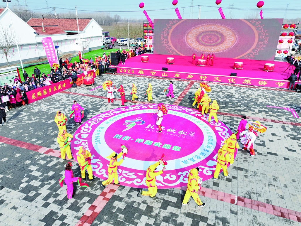 赶大集、看非遗、扭秧歌……1月18日,2024春节山东乡村文化旅游节“舞动千万家”——山东省“扭起秧歌过大年”主题活动启动仪式暨阳信鼓子秧歌展演在洋湖乡举行。