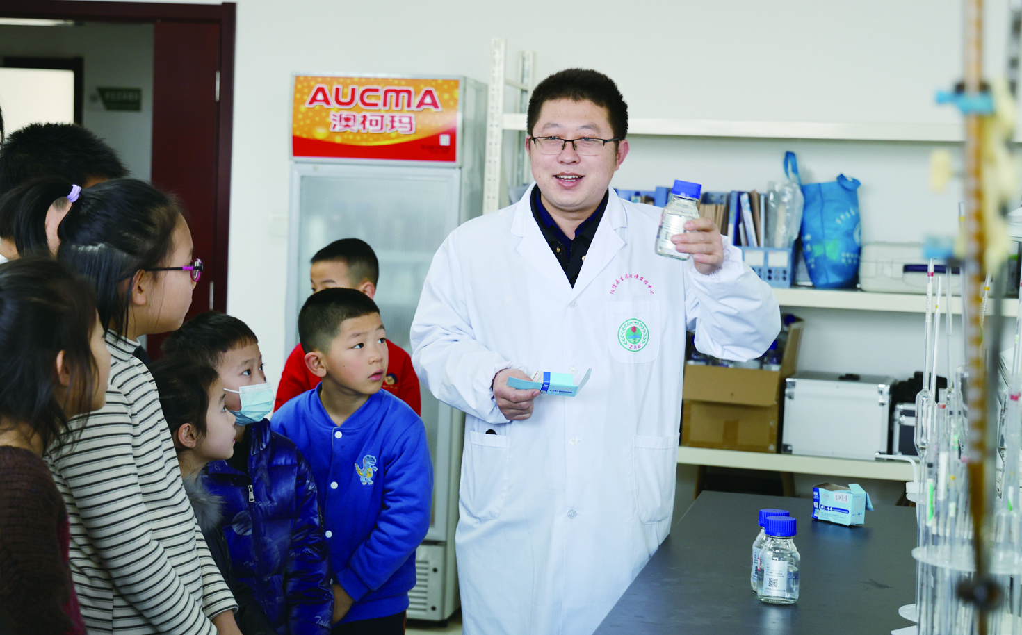 结合理论学习,同学们来到县生态环境监控中心实验室,宣讲员现场教学怎样使用PH试纸粗略检测溶液的酸碱程度,并用便携式多参数测试仪进一步验证判断结果,邀请并指导同学们自己动手使用PH试纸,感受化学实验的乐趣。同时,大家跟随宣讲员的脚步,参观了检测水样中氨氮、COD、氟化物、高锰酸盐等指标的仪器,宣讲员以通俗易懂的语言介绍了水质检测的工序,并为大家讲解日常节水的知识,引导同学们珍惜、爱护水资源。