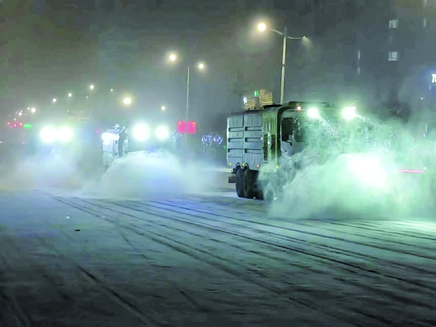 截至20日23时25分记者发稿时止,他们仍然战斗在一线,共出动清雪除冰机械15辆,清雪人员60人,撒布融雪剂25吨。他们按照以雪为令、雪中路通、雪停路畅的工作要求,坚持机械清雪为主、人工清雪为辅、科学使用融雪剂,坚持随下随清和边清边运相结合、清扫和外运同步进行,坚持清雪与保护城市绿地、市政设施相结合,全面提高清雪效率和质量,全力保障城市道路安全畅通。