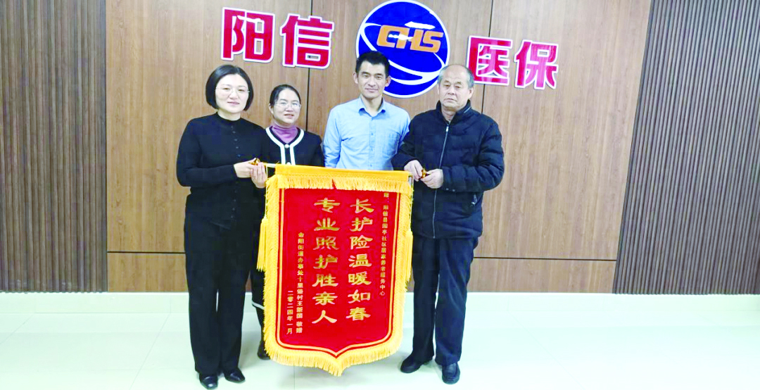 本报讯 “感谢党和政府实施长护险,这个政策真正是办到我们心坎里了!长护险政策好,服务好,为我们一家大大减轻了负担,不仅是经济负担、照护负担,还有心理负担!”日前,金阳街道办事处十里堡村民王先生将一面“长护险温暖如春,专业照护胜亲人”锦旗交到护理人员手上,感激之情溢于言表。