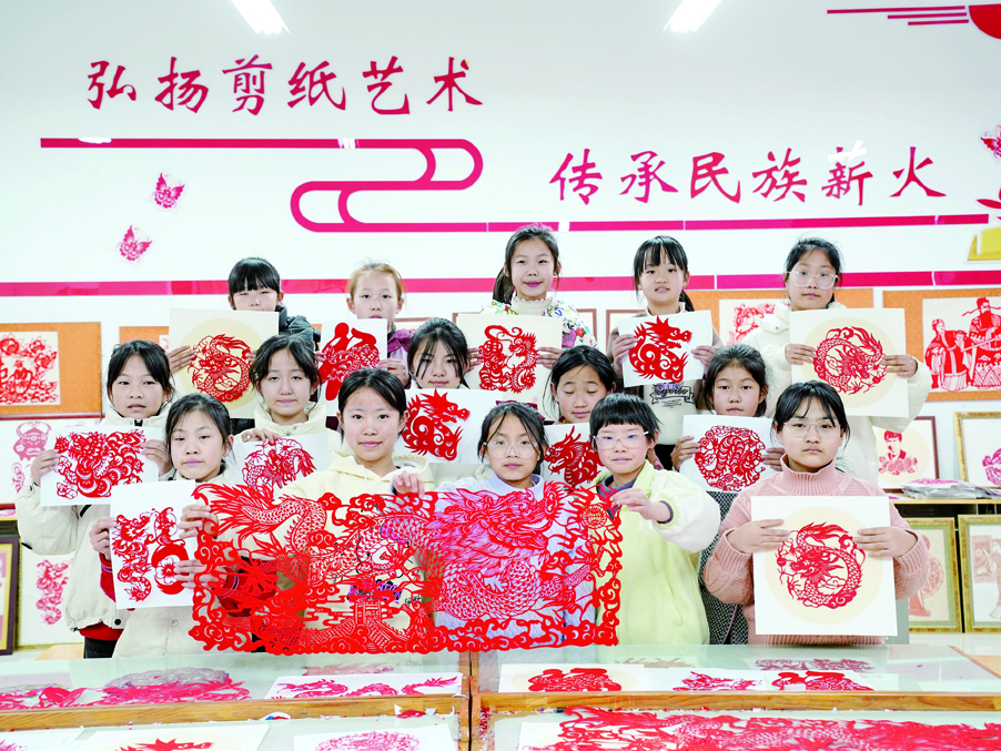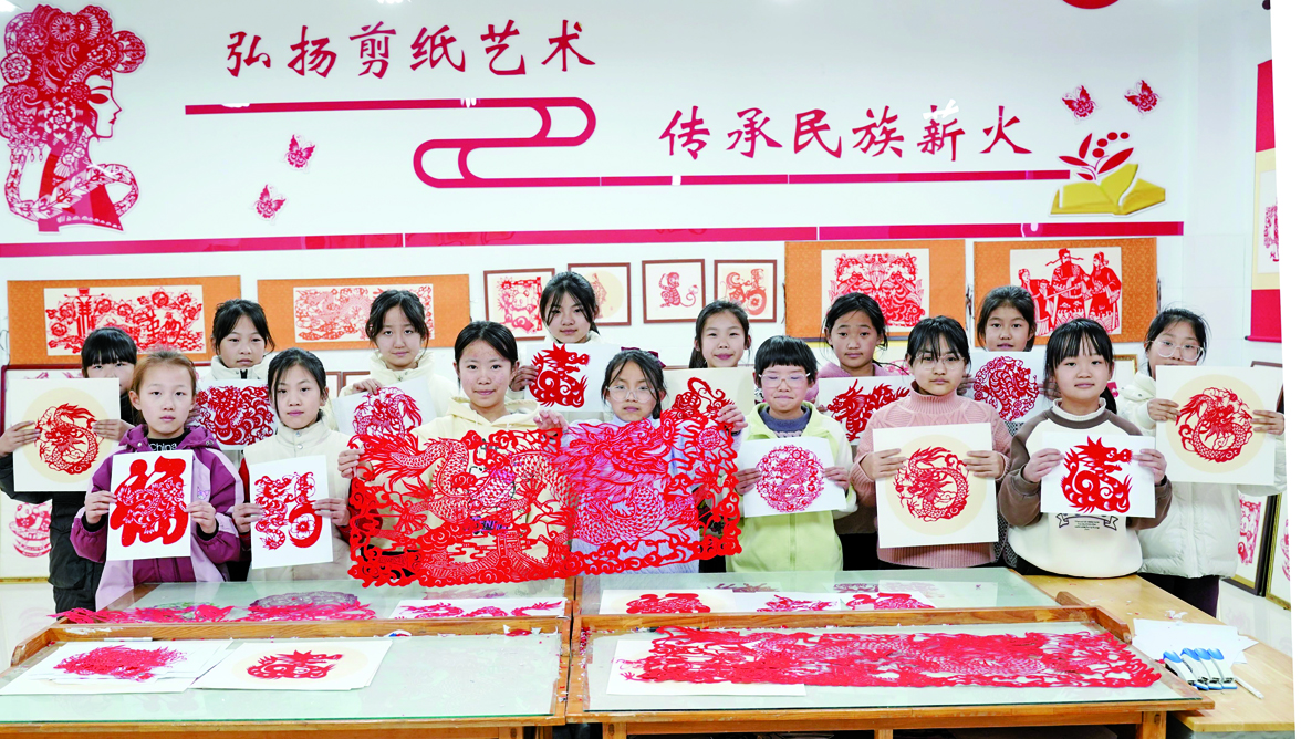 近日,河流镇陈家小学迎来了新学期开学日,小队员们巧剪百龙,传承非遗,纷纷拿着自己的得意“寒假作业”向大家展示,让传统文化教育走出书本,进入生活。