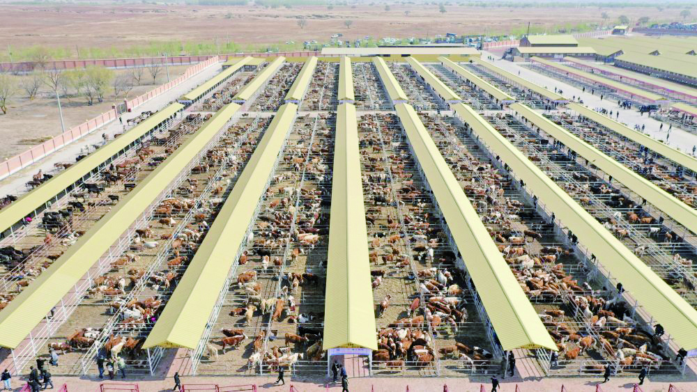 图为位于内蒙古科右中旗的牛羊交易中心