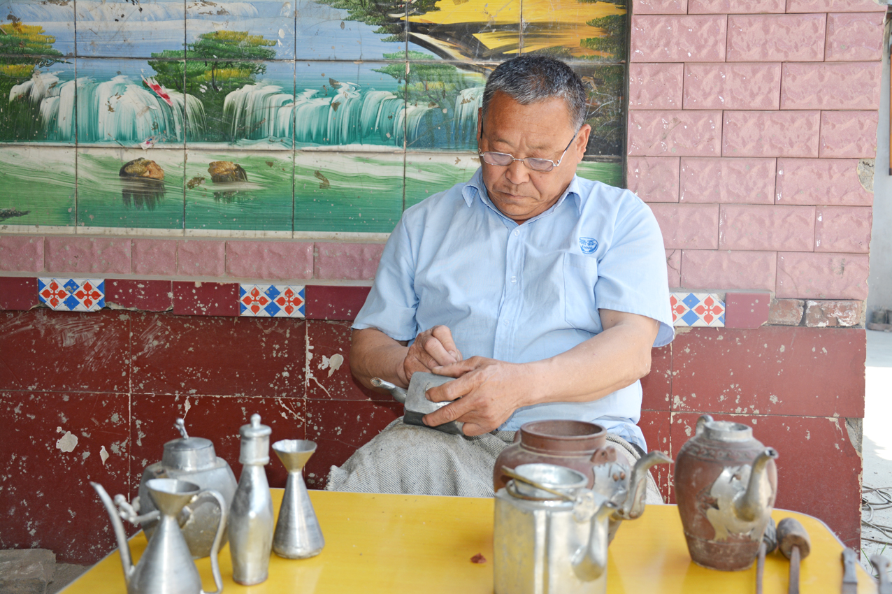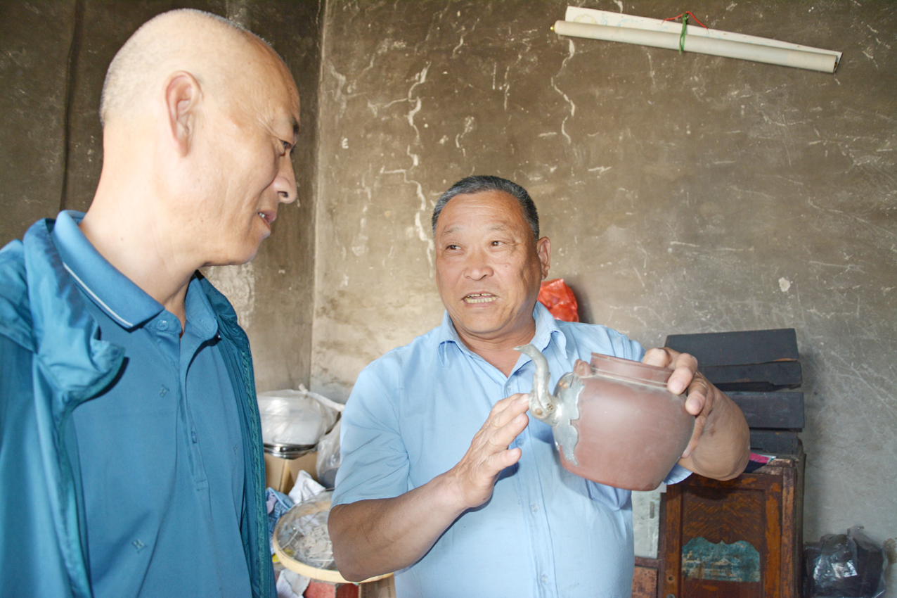今年62岁的魏炳贤,是阳信县商店镇桑北陈村民,也是他们家第四代锡壶制作技艺传承人。