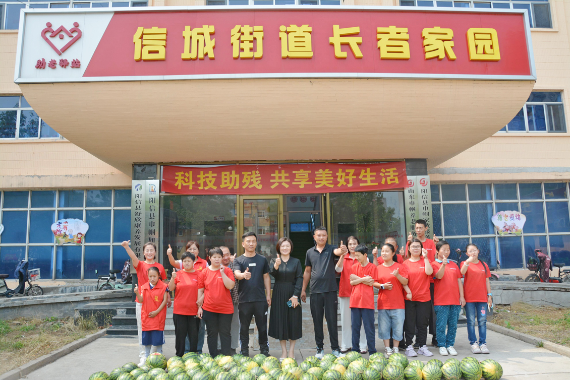 5月21日,金阳办事处吴家楼村爱心村民王建辉和他的朋友冒着高温,开着货车到阳信巾帼如康家园,送去了2000多斤爱心大西瓜给残疾人,让社会的这些弱势群体感受到节日的喜庆和来自社会的关爱。