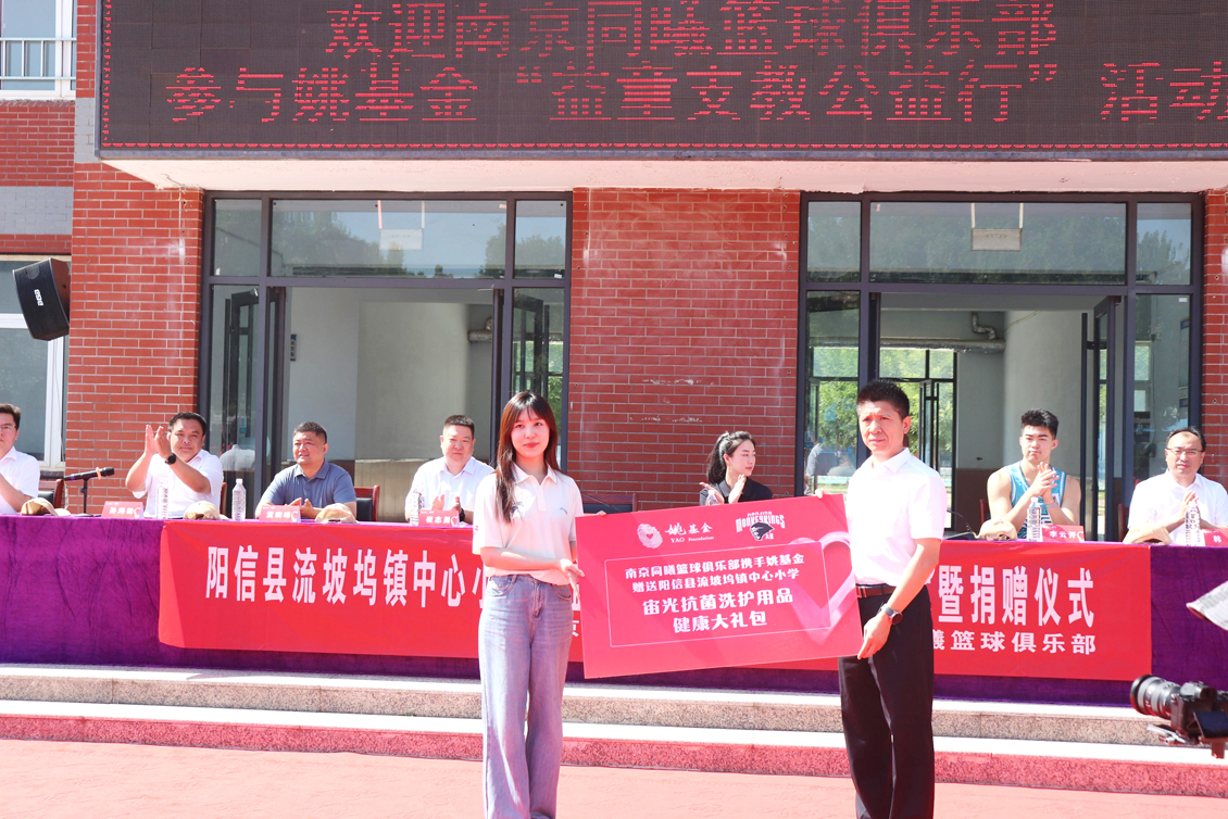 6月25日,南京同曦篮球俱乐部·姚基金“益童支教公益行”系列活动在流坡坞镇中心小学成功举办。北京姚基金公益基金会合作中心传播主管王珩,南京同曦篮球俱乐部品牌经营中心总监杨晨歆,南京同曦篮球俱乐部球员李云开,山东省青少年发展基金会资助部部长董晓峰,共青团滨州市委书记崔志勇,阳信县委常委、组织部长尹晖等出席活动。本次活动由阳信县流坡坞镇党委副书记、镇长孙海轮主持。
