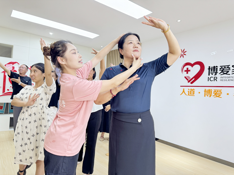 在课堂上,专业舞蹈老师从肢体动作表达到面目表情展现,对大家进行了认真系统性地讲解、指导。社区群众热情高涨,认真学习老师教授的每一个动作,在指导老师的带领下,伴随着悠扬、欢快的音乐,舞步渐渐娴熟起来。此次活动不仅丰富了群众精神文化生活,而且促进彼此情感交流。