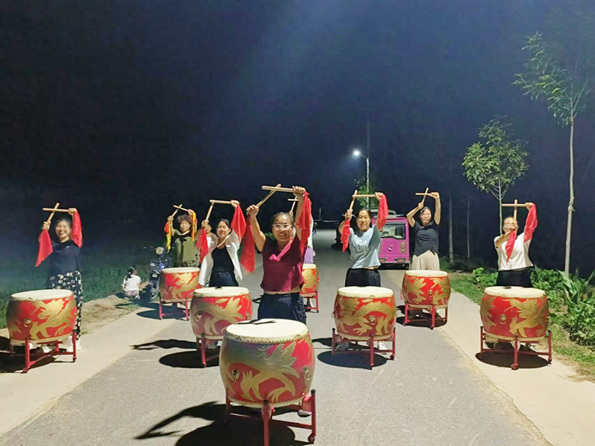 2019年5月份,王玲玲有了把鼓和流行音乐结合在一起的想法,她们就在各个平台搜集视频,一边上班一边练习,终于在2019年6月1日儿童节这天,她们四个人在家长,父老乡亲面前第一次演出,迎来一致好评,至此当做一种业余爱好来锻炼身体,直到2024年,镇政府举行大型消夏晚会,她们积极报名,又一次出现在大众视野面前,也从最初的4个人,发展到队员高敏、郑华、赵真、赵大萍、王芳芳、刘晓珍、杨秀凤共8个人,共同的爱好,让自己的团队正式成立,秉承越来越好的信念,从会到精的态度,争取走出温店,去更大的舞台去学习。