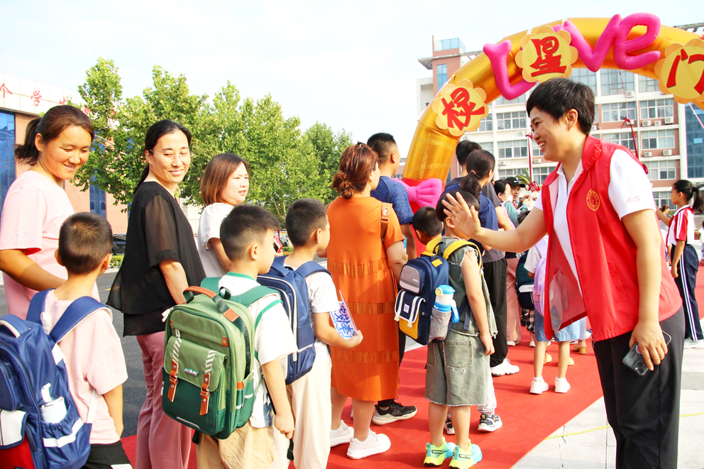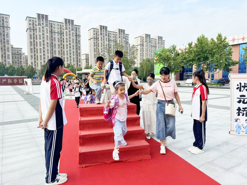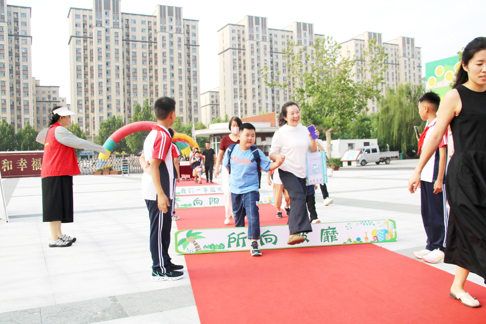 红地毯、彩虹门、成长跨栏、幸福祈福、走状元桥等,8月31日上午,阳信县第一实验学校举行了一场别开生面、具有中国传统文化特色的新生入学礼,700余名小学生们满怀期待和憧憬,在教师们的热情引导和家长的陪伴下,走进校园,开启崭新的小学生涯。