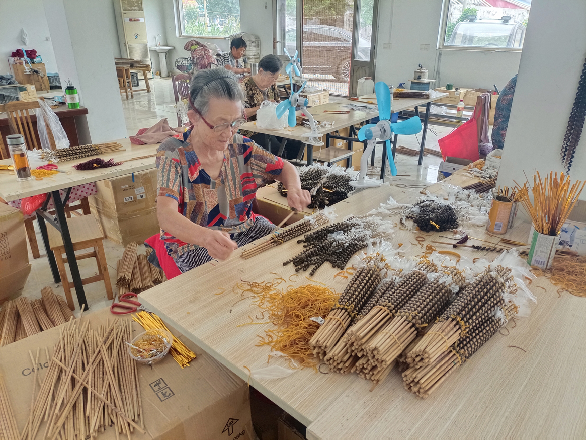 据赵文芳介绍她这里有好几种手工活,没有性别年龄限制,只要你学就会干,在这里的工人只是一小部分,为了方便照顾家庭大部分工人把活领回家,解决了周边三四十名妇女家门口也能挣钱的愿望。其中一位八十多岁的老奶奶说:“岁数大了,重活干不了了,在这里热热闹闹,冬暖夏凉,一天还能挣三十多块钱,手脚灵活,心情还好,都觉的自己也年轻了。”