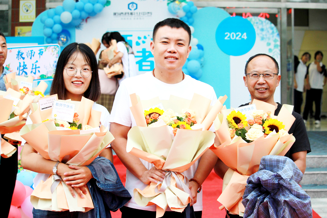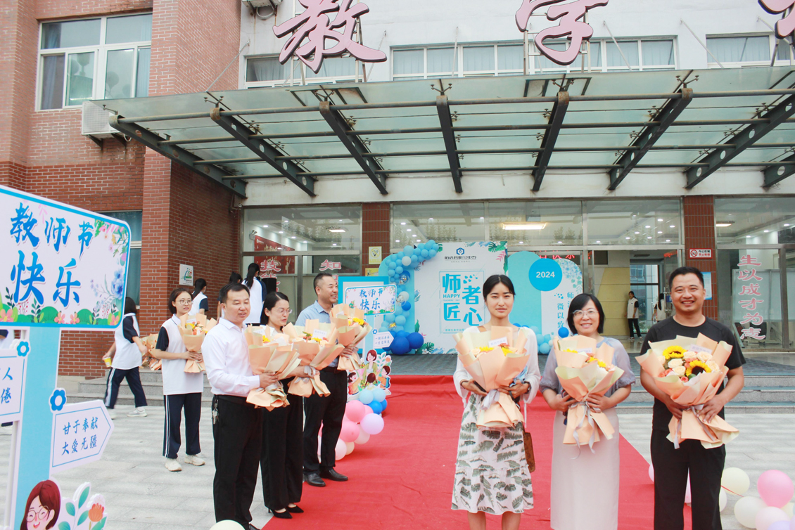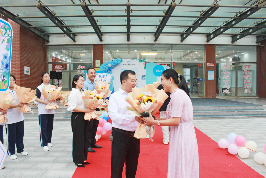 9月10日清晨伊始,校园里便弥漫着感恩的气息,校领导分赴南北两院,表达对教师们的敬意和祝福。老师们如往常一样走进校园,迎接他们的是一份意外的惊喜。校领导们手捧一簇簇鲜艳的花束,每一朵都饱含着对老师们诚挚的祝福。老师们接过鲜花,脸上洋溢着幸福的笑容,心中充满了感动。