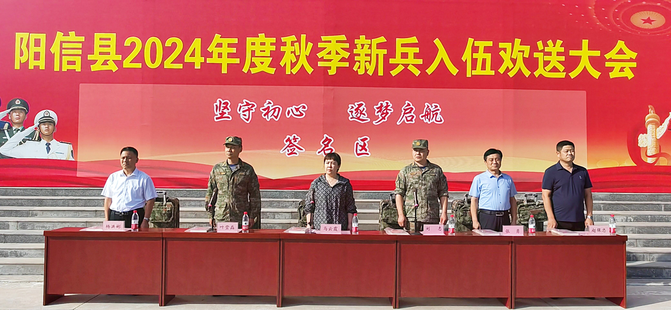 金秋九月送新兵,扬帆起航踏征程。9月17日下午,在县民兵训练基地举行2024年秋季新兵入伍欢送大会。副县长马云霞,县人武部部长、县征兵工作领导小组副组长刘志参加,大会由县人武部政委叶莹磊主持。