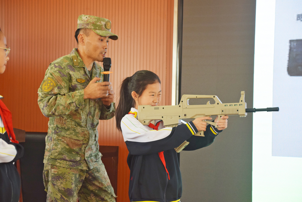 郝教官在细致讲解各种武器的构造和使用场景后,与学生热情互动,沉浸式的体验让同学们热血沸腾。现场还通过枪械拆解,激光打靶的体验方式,让同学们更好地了解国防知识和军事技能,增强了同学们的国防意识和爱国主义情感。