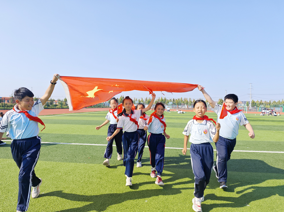 生在红旗下,每个人心里都有一抹永不褪色的中国红,队员们踊跃参加活动,他们与鲜红的国旗合影、抒发对祖国的祝福,表达对祖国的热爱。队员们纷纷表示,无论在哪里,心中永怀爱国心;无论在何时,用心谱写爱国情!