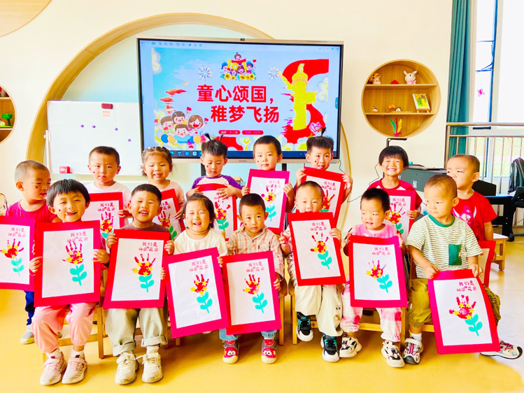 本报讯 为迎接祖国妈妈75周岁生日,激发孩子们的爱国主义情感和民族团结情怀,金阳街道程坞幼儿园开展“童心迎国庆,共绘中国梦”国庆节活动。