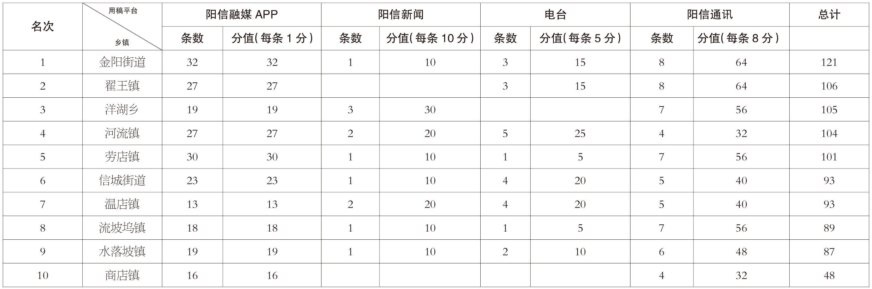 2021年阳信县融媒体中心12月份各乡镇用稿情况通报