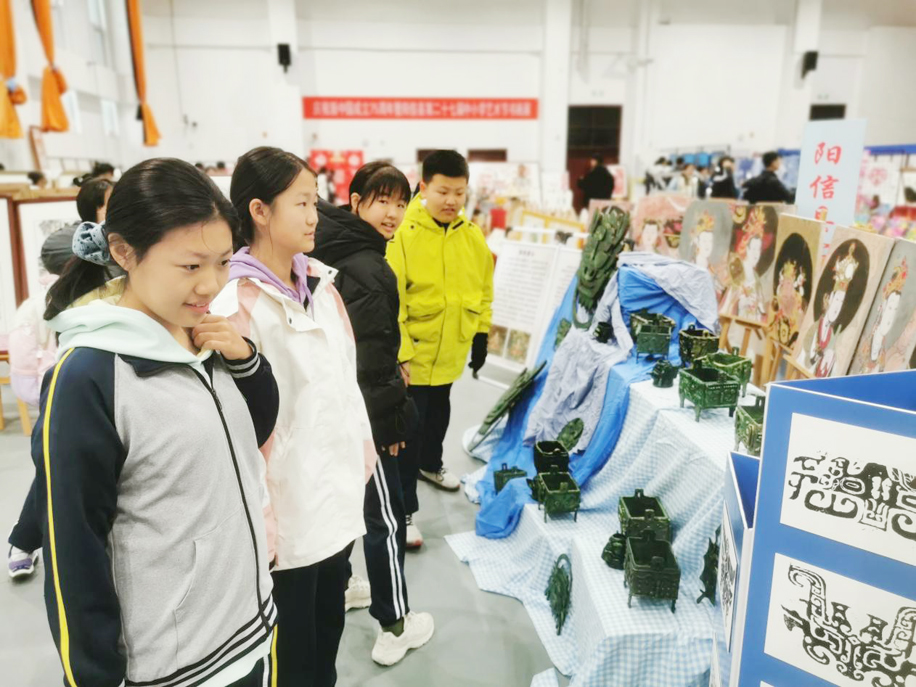 为充分展示美育成果,阳信县自1996年以来举办了27届中小学艺术节。本届展览共展出全县中小学师生500余件作品,包含书法、国画、工艺、摄影等门类。作者们以“弘扬传统文化,展现秀美家乡”为主题,用书画、手工等形式表达对艺术的炙热追求,彰显对家乡的赤诚情怀。