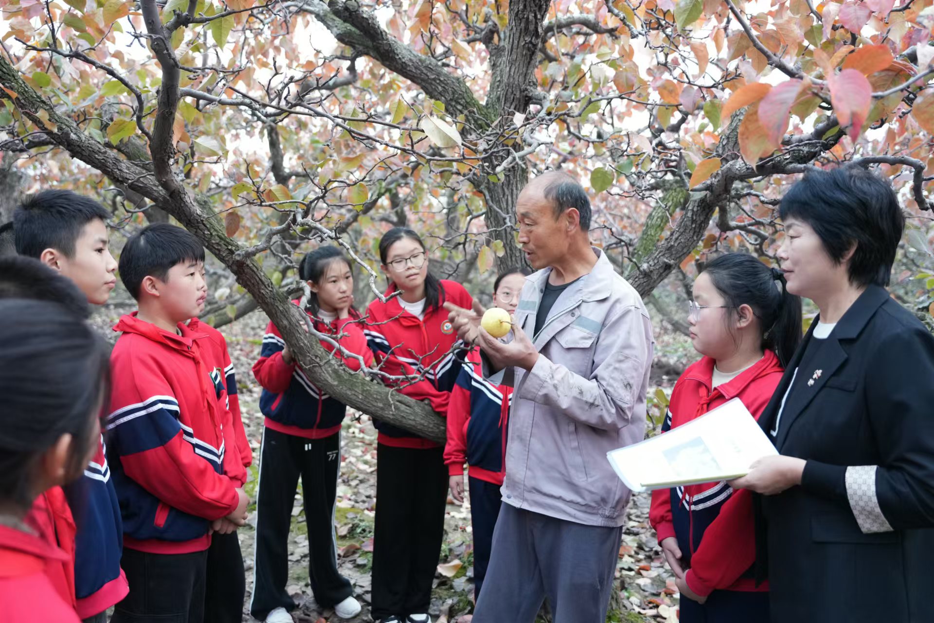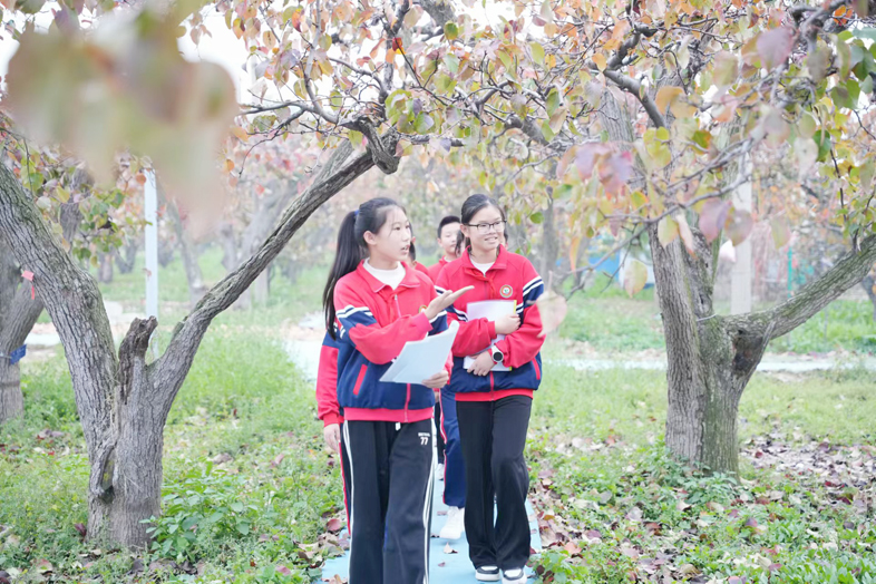 10月30日上午,阳信张黄小学的师生们走进梨园,尽情享受大自然的无限魅力。一位摄影爱好者告诉记者,自己多次来梨园拍摄红叶,他说,每年10月至11月,阳信境内的鸭梨树叶流丹,呈现出漫地红遍层林尽染、五彩斑斓的绚丽景观。红叶竞相斗艳,地被红叶遮掩,水被红叶浸染,道被红叶铺成,一丛丛,一片片的霜染红叶延绵几多公里,形成的令人失魂夺魄的壮美景色被游人称为“十里云霞”,成为鲁北大地最佳红叶观赏区和周边省市摄影爱好者的红叶定点拍摄基地。登上观花台等处的红叶观赏平台,万般美景尽收眼底,令人不得不赞叹自然造化之神奇。在欣赏漫地红叶的同时,同时领略了梨乡最美的红色,感受独具魅力的最美小城。