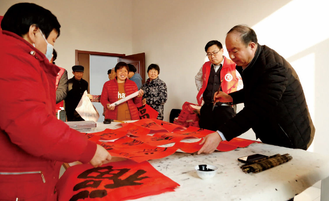虽是岁末年初、寒冬数九,但在洋湖乡庙五庄村新时代文明实践站里却是暖意融融、喜气洋洋。来自市、县的书法家们齐聚于此,挥毫泼墨、笔走龙蛇一副副饱含墨香、满怀深情的春联以及形态各异的“福”字,引得现场观众拍手叫好,连连称赞。在给村庄居民送去祝福的同时,也将优秀传统文化弘扬开来。