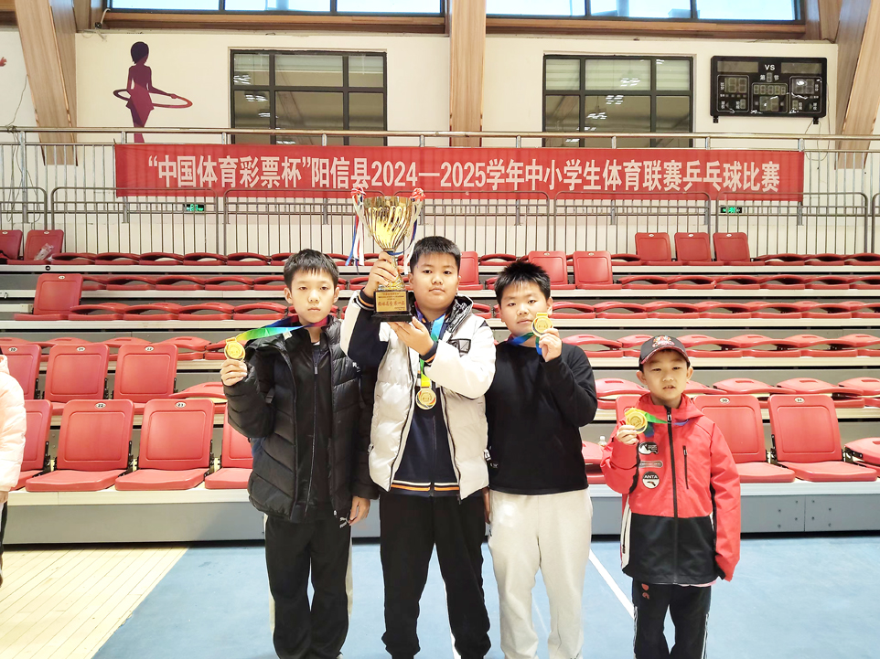 本报讯 11月16日,阳信县2024年中小学体育联赛乒乓球比赛圆满结束。阳信县第一实验学校小学组男、女乒乓球队在本次比赛中充分展现了敢打敢拼、积极进取的体育竞赛精神 ,成功夺得小学组男子、女子双冠军,并以出色的表现取得团体总分第一名的优异成绩。