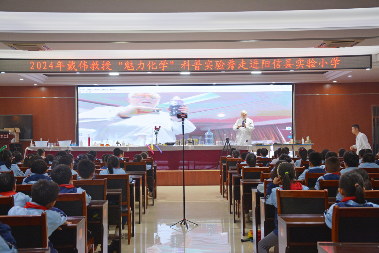 此次戴伟教授走进阳信县实验小学,为师生们开启了一扇通往科学新世界的大门。他通过精彩绝伦的实验演示和生动有趣的讲解,将复杂的化学原理转化为一个个直观可见的现象。孩子们目不转睛地看着那些神奇的化学反应,眼中闪烁着好奇与求知的光芒。原本晦涩难懂的化学知识,在戴伟教授的口中变成了引人入胜的故事,激发了孩子们对科学的热爱和对未知世界的探索欲望。