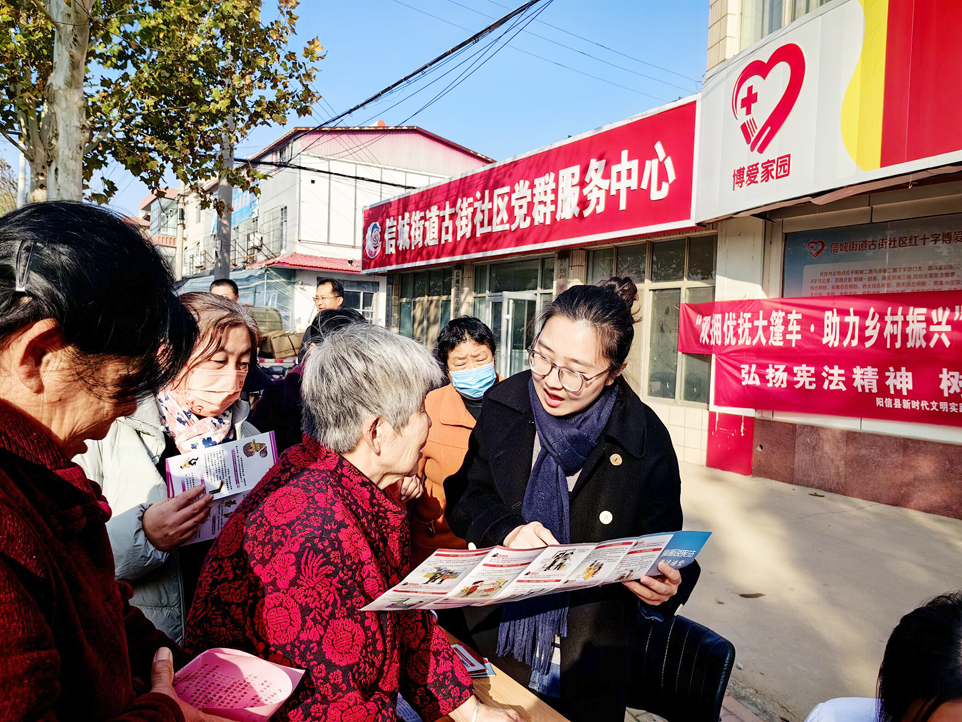 在梨园广场,信城司法所与县司法局通过悬挂横幅、发放宣传资料、猜法治谜语、现场解答咨询等多种方式,把宪法送到群众身边,司法所工作人员向群众发放宪法宣传手册,在普法宣传展板前用通俗易懂的语言向群众讲解宪法的发展历程、宪法赋予公民的权利和义务,使广大群众切实了解宪法、学习宪法、运用宪法,引导群众树立宪法意识,维护宪法权威。