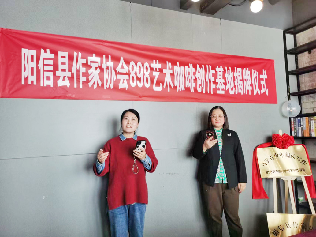 近日,阳信县作家协会898艺术咖啡创作基地、马宁青少年前沿阅读和写作小作家创作基地揭牌,县作协、小作家创作班、898咖啡西餐厅总经理谷利民参加揭牌仪式。