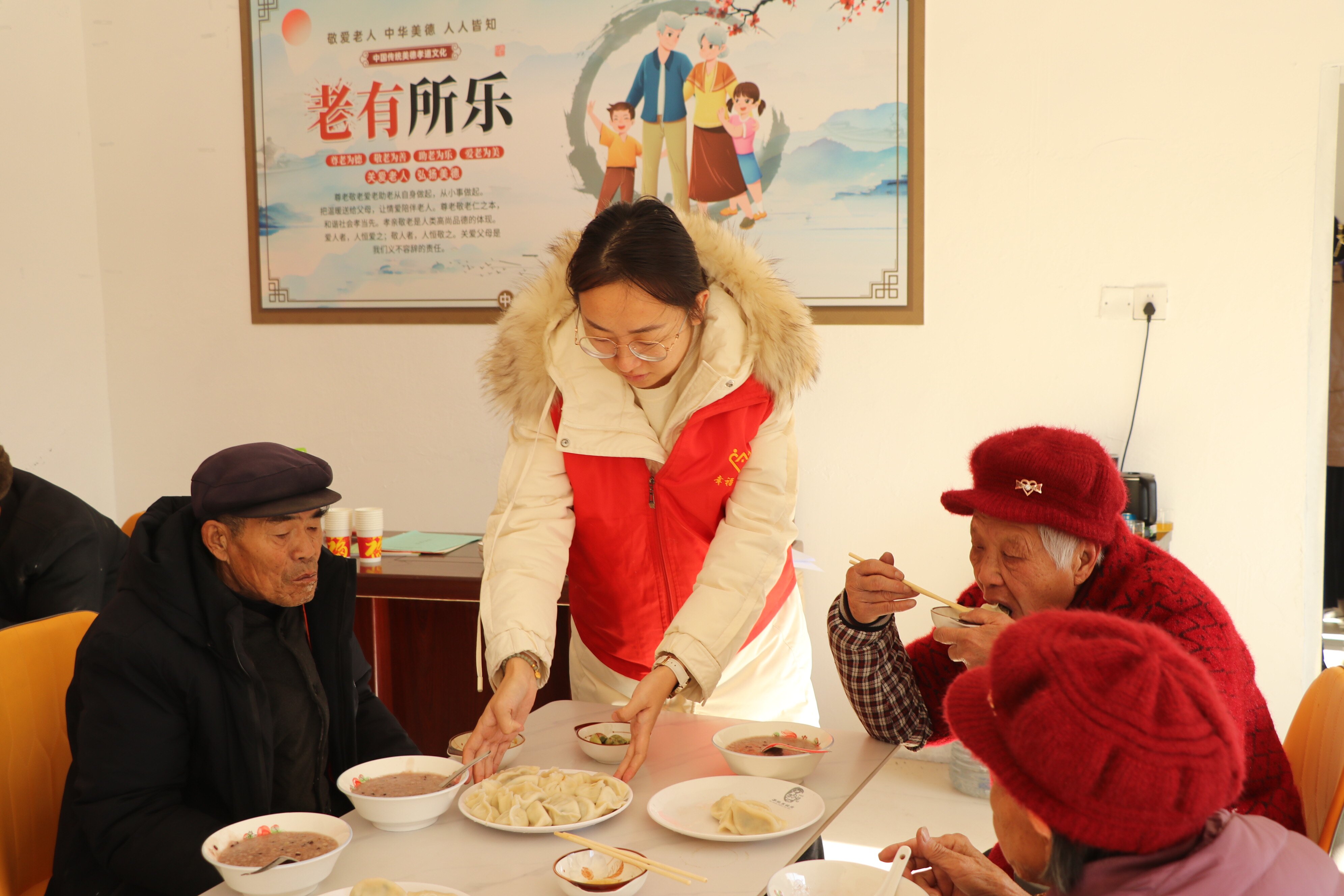 为了让老人们过一个温暖的腊八节,志愿者们一大早就准备好包饺子和熬粥的食材。不过两三个小时的时间,一碗碗热腾腾的腊八粥就端到了老人面前,一叠叠盛满关切和祝福的饺子送到了老人桌前,他们幸福地品尝着,脸上绽放出满意的笑容。志愿者们与老人们亲切的交谈,询问他们的身体状况和生活情况,并叮嘱老人们要注意保暖、保重身体。