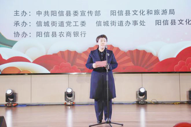 本次活动由县委宣传部、县文化和旅游局主办,信城街道党工委、信城街道办事处、县文化馆承办,阳信农商银行协办。各乡镇(街道)分管文化工作的相关人员及信城辖区群众共200余人参加活动。