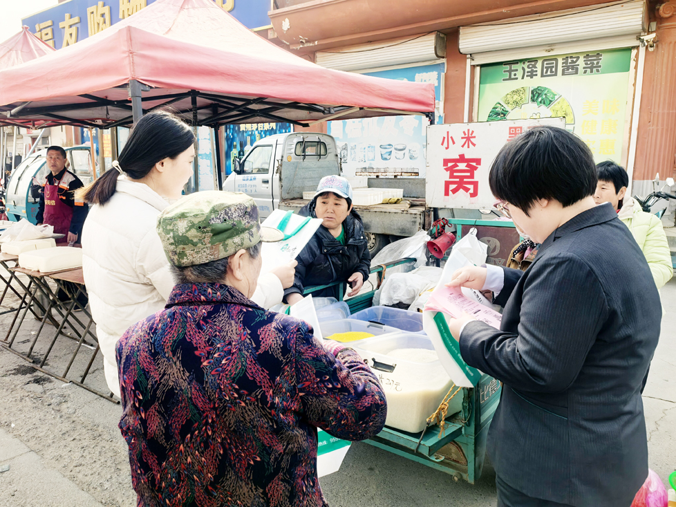 在大集现场,乡村振兴岗与农行工作人员组成的“惠农服务队”成为群众关注的焦点。工作人员通过发放宣传手册、展示申请流程、现场答疑等方式,生动讲解政策优势和使用方法。展位前,前来咨询的群众络绎不绝,工作人员耐心解答,帮助群众深入了解政策内容,确保政策宣传“听得懂、用得上”。