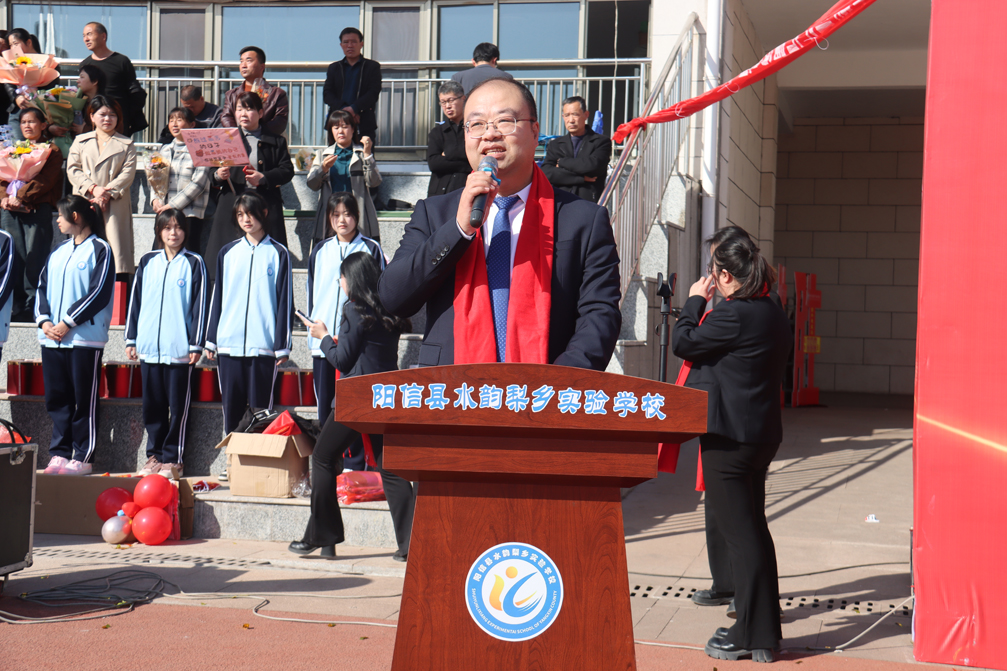 近日,阳信县水韵梨乡实验学校举行“2025年中高考誓师大会暨高三年级成人礼”活动。阳信县水韵梨乡实验学校校长李玉铭,副校长赵永刚、刘同堂、崔晓栋,校长助理丁雪彬、赵汝峥出席活动,初三及高三学生家长也亲临活动现场,活动由办公室主任杨兆明、初三优秀教师代表张娟主持。