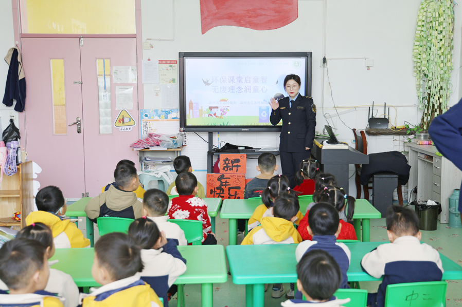 本报讯 3月30日是“世界无废日”,为助力“无废城市”建设,加强生态文明教育,普及生态环境保护知识,进一步提升幼儿保护生态、珍惜资源、爱护环境的责任感,3月28日,滨州市生态环境局、滨州市生态环境局阳信分局走进县第一实验学校附属幼儿园,开展了一场别开生面的“环保课堂启童智 无废理念润童心”主题宣教活动。