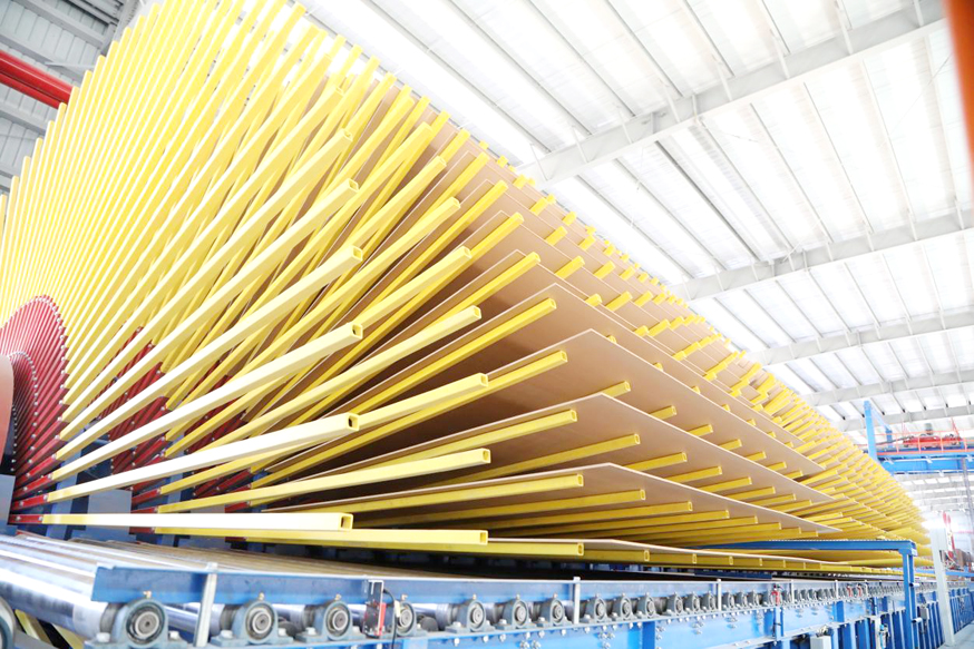 走进智能化车间,世界领先的连续平压生产线正以95%的原料利用率高效运转,产出2~40毫米全规格密度板。核心秘密在于采用万华板业自主研发的MDI生态胶黏剂,使板材在高温固化后实现零甲醛释放,环保性能跃居全球金字塔顶端。