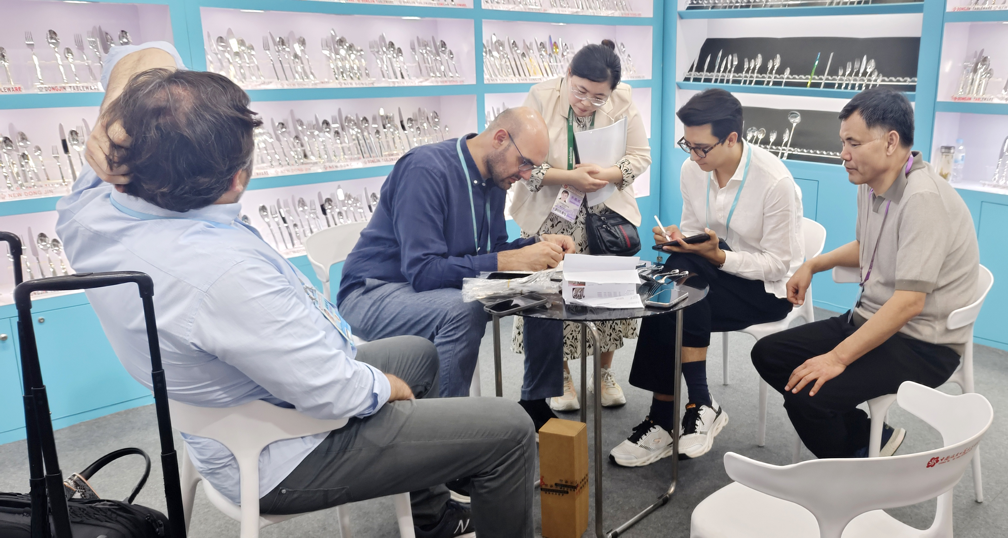 我县新东进餐具(阳信)有限公司是一家高端餐具制造企业,凭借精湛的工艺、卓越的品质和时尚的设计,吸引了众多国内外采购商的目光。展会期间,新东进餐具同广州、上海两地合作伙伴深度畅谈,进一步巩固了双方的合作关系,还与多家潜在合作方展开洽谈,成功达成初步合作共识。