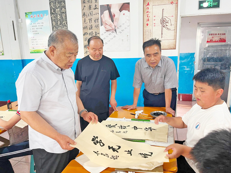 县书协主席范俊良等知名书法家,在位于信城街道园亭社区接官亭村的墨耕书法培训学校,现场观摩教学活动,对中小学生学员分别进行书技辅导,并对优秀学员作品进行点评,指出笔法字法、章法布局以及上下款识中存在的不足之处,对学员们正确理解把握习书技艺、提高临创水平起到了重要和关键作用。