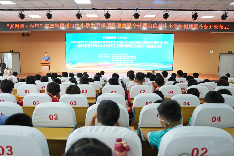 为深入贯彻体教融合战略,全面提升我县及全市中小学生体质健康水平,夯实竞技体育后备人才基础,7月10日上午,“奔跑吧·少年”2025年滨州市中小学生手球项目健康夏令营暨阳信县中小学生健康夏令营在翟王镇中学隆重开营。滨州市教育局、滨州市体育局、阳信县教体局、翟王镇党委政府相关负责人,全体参训运动员、教练员、部分运动员家长参加了开营仪式。