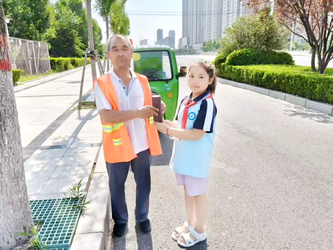 一杯清露,不仅驱散了夏日的燥热,更在户外工作者与孩子们之间架起了温情的桥梁。老人们接过杯子时眼角的笑纹,快递员放下包裹连说“谢谢”的真诚,环卫工捧杯轻吹热气的模样……这些细碎的温暖瞬间,都成为活动最动人的注脚。对队员们而言,这不仅是一次公益实践,更是一堂生动的人生课——他们在递出杯子的瞬间,懂得了用行动传递尊重,用关怀诠释感恩,让温情的种子在彼此心中生根发芽。活动虽短暂,但一句句真诚的分享让爱的种子在他们心底发芽生根,懂得珍惜他们的劳动成果,关心关爱身边的人,孩子们触摸到平凡岗位背后的伟大。