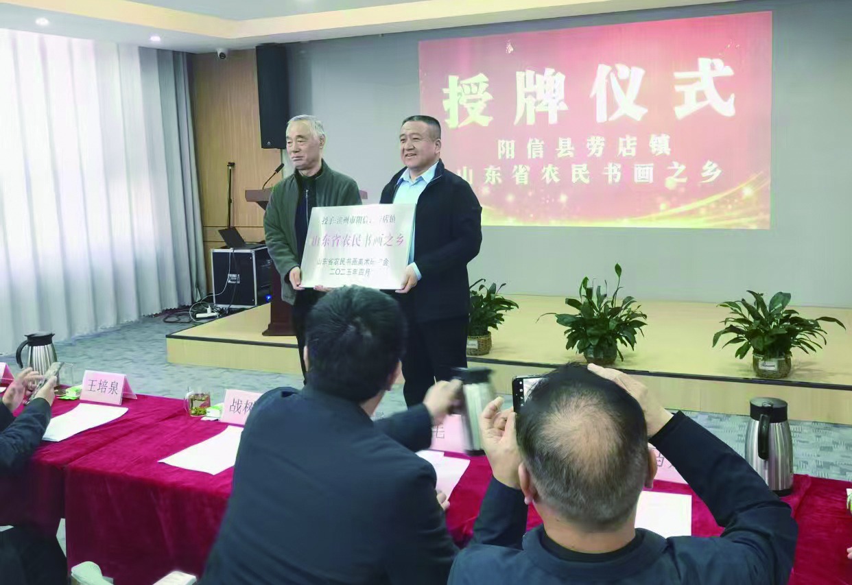 12月3日,记者在阳信县劳店镇采访时获悉,按照相关管理办法,经阳信县农民书画美术研究会推荐,山东省农民书画美术研究会实地考察和研究认定,同意授予劳店镇山东省第一家“山东省农民书画之乡”荣誉称号。