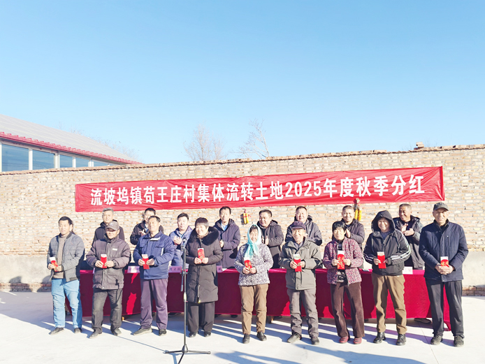 本报讯 土地流转结硕果,秋季分红暖民心。12月4日,流坡坞镇苟王庄村在村广场举行土地流转2025年度秋季分红活动。驻县省派工作队队员、山东劳动职业技术学院人事处处长张新成,县委组织部人才服务促进中心经济审计室主任刘洪刚,流坡坞镇党委副书记、镇长孙海轮,省派第一书记高捍东、沈立民等出席活动,与50余名村民共同见证“土地生金”的丰收时刻,共享乡村振兴的丰硕成果。
