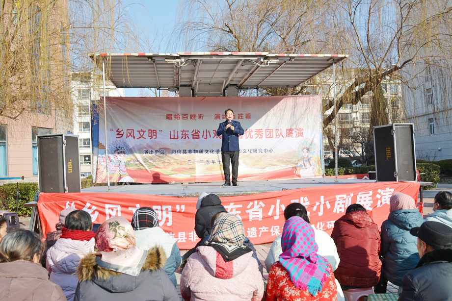 12 月 28 日,县非遗中心精心组织的“乡风文明”山东省小戏小剧优秀团队展演活动,走进信城街道园亭社区金羚美景良城小区,为居民们带来了一场精彩纷呈的文化盛宴。