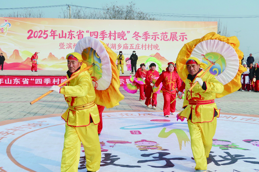 2025年12月30日,2025年山东省“四季村晚”冬季示范展示暨洋湖乡庙五庄村村晚活动在洋湖乡庙五庄村秧歌人家大舞台举办,来自全乡秧歌爱好者们近300余人齐聚庙五庄村,以铿锵欢快的秧歌舞步,表达了对新的一年的喜悦与期待。