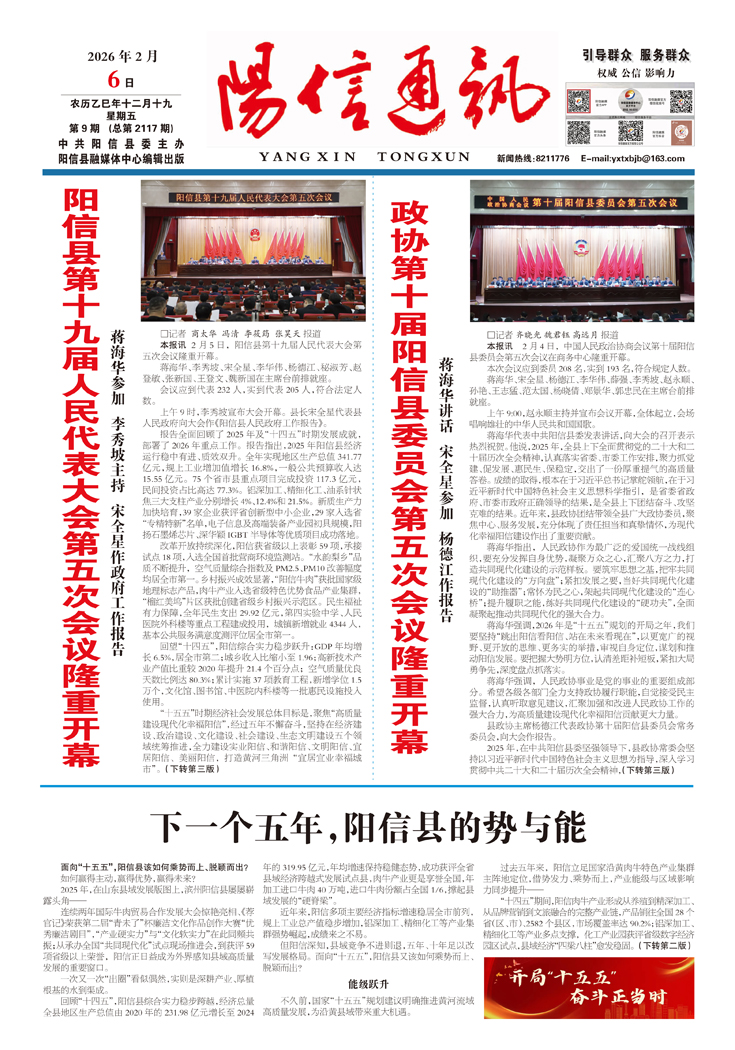 阳信县第十九届人民代表大会第五次会议隆重开幕 蒋海华参加 李秀坡主持 宋全星作政府工作报告