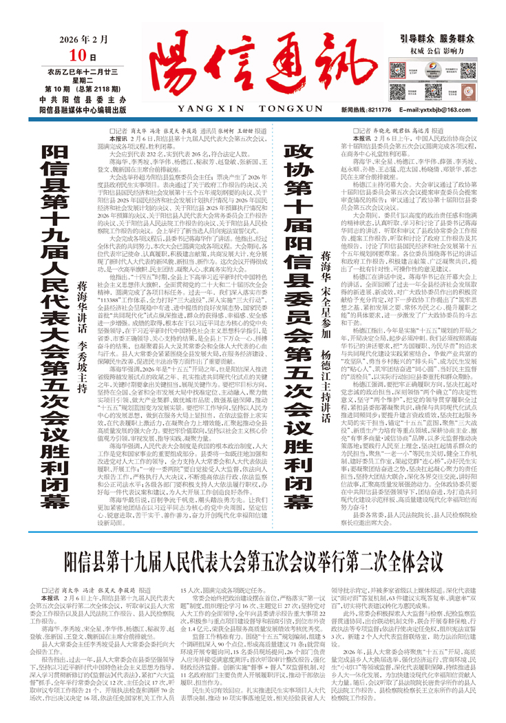 政协第十届阳信县委员会第五次会议隆重开幕 蒋海华讲话 宋全星参加 杨德江作报告