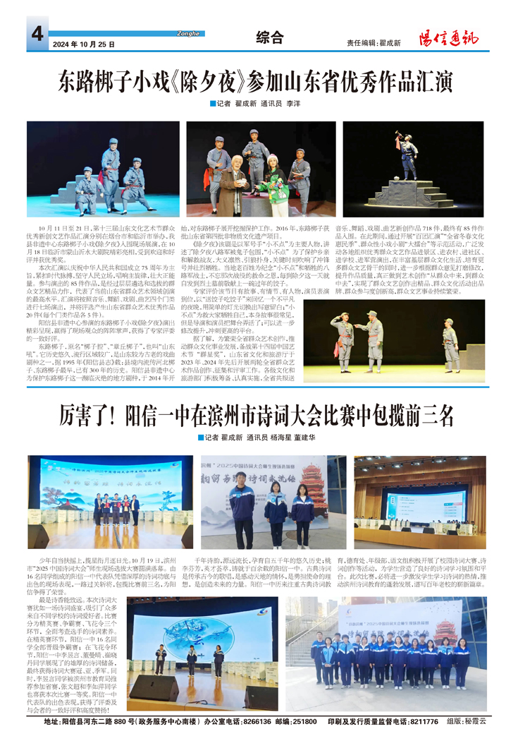 厉害了!阳信一中在滨州市诗词大会比赛中包揽前三名