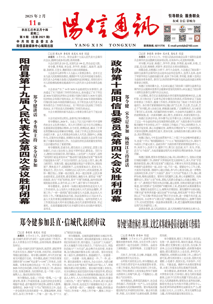 政协第十届阳信县委员会第四次会议胜利闭幕 郑令健 宋全星参加 杨德江主持讲话