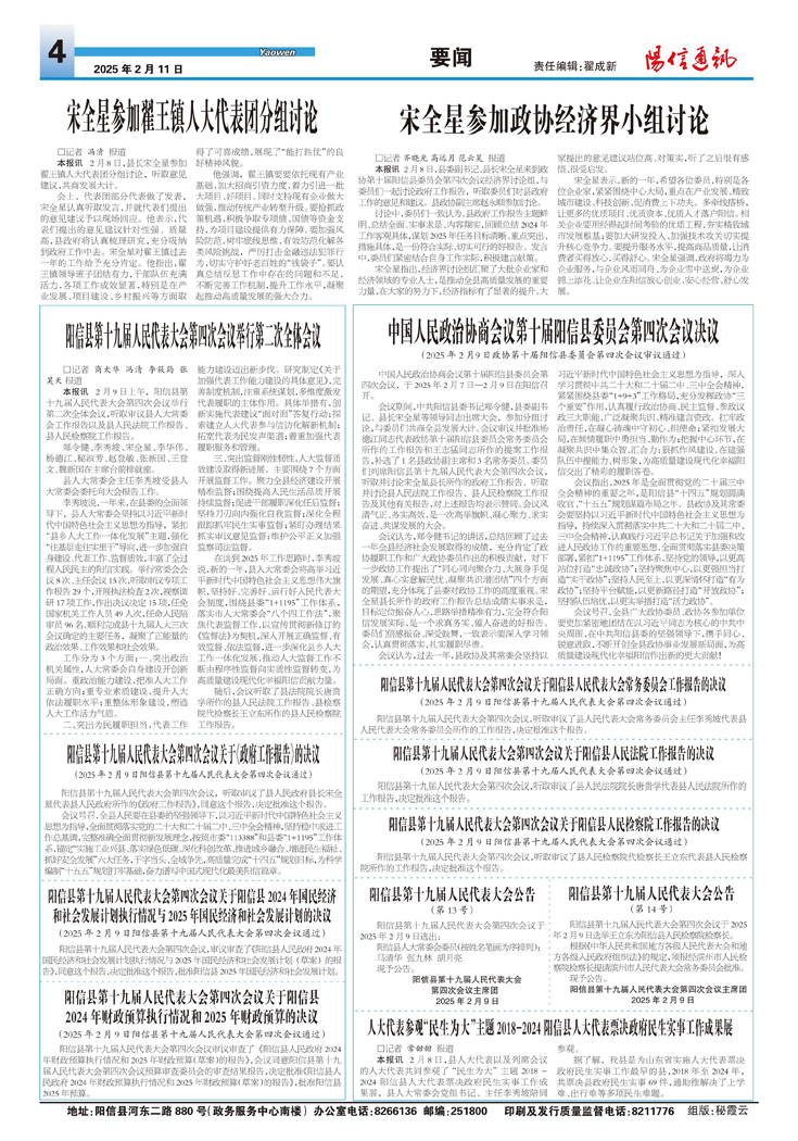 中国人民政治协商会议第十届阳信县委员会第四次会议决议 (2025年2月9日政协第十届阳信县委员会第四次会议审议通过)