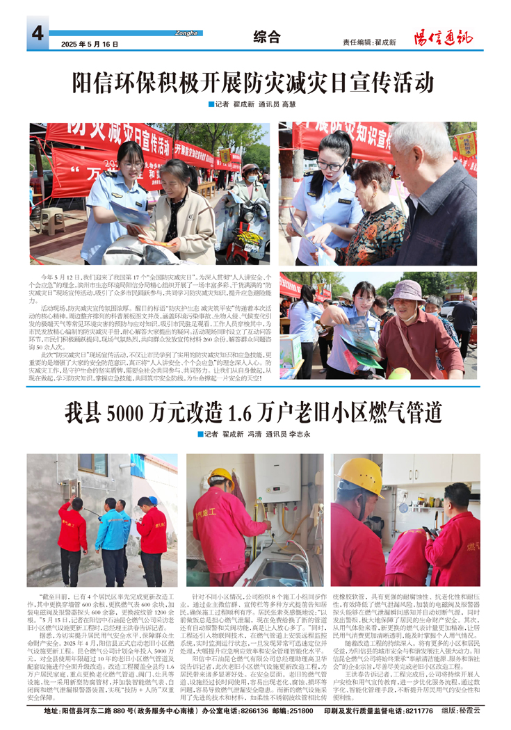 阳信环保积极开展防灾减灾日宣传活动