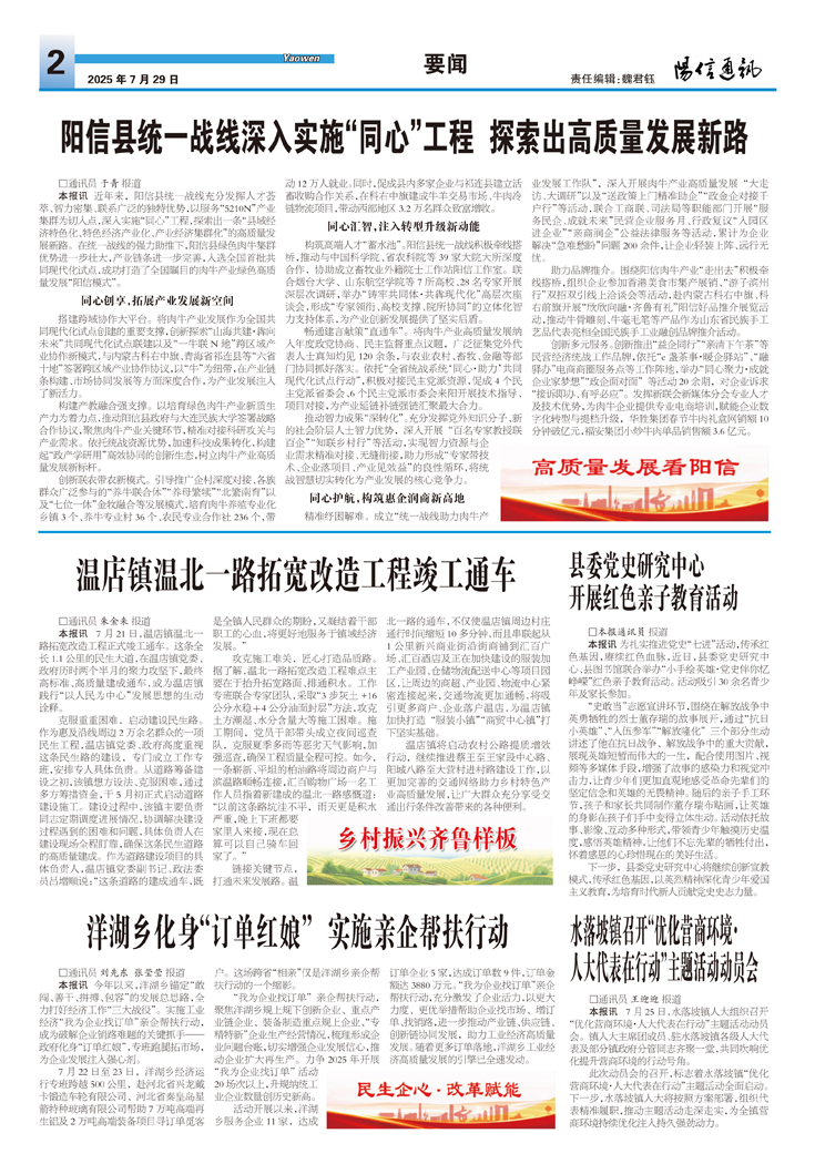 阳信县统一战线深入实施“同心”工程 探索出高质量发展新路