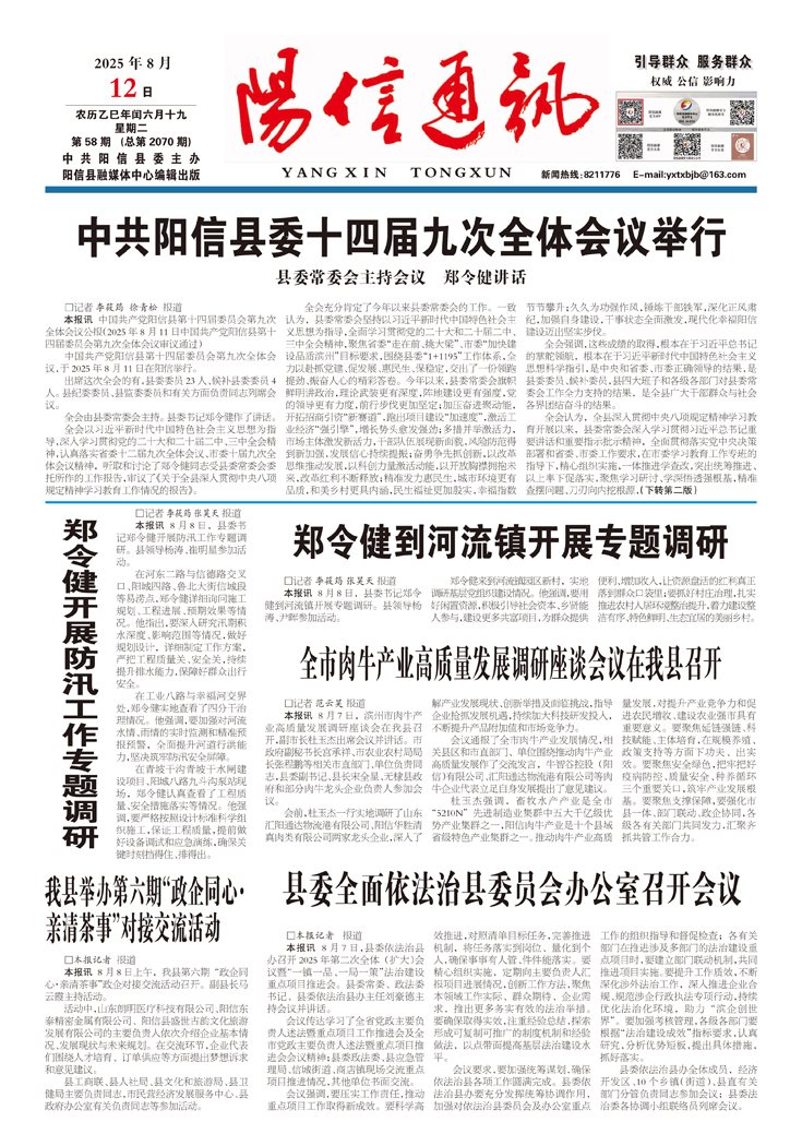 中共阳信县委十四届九次全体会议举行 县委常委会主持会议 郑令健讲话