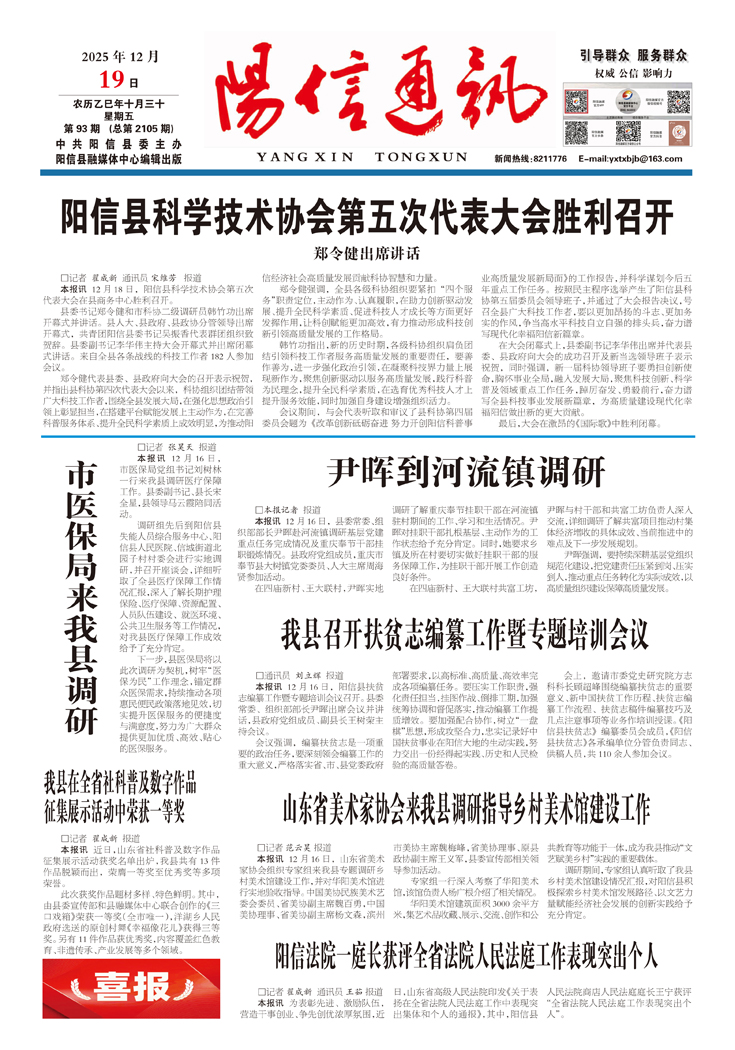 阳信县科学技术协会第五次代表大会胜利召开 郑令健出席讲话