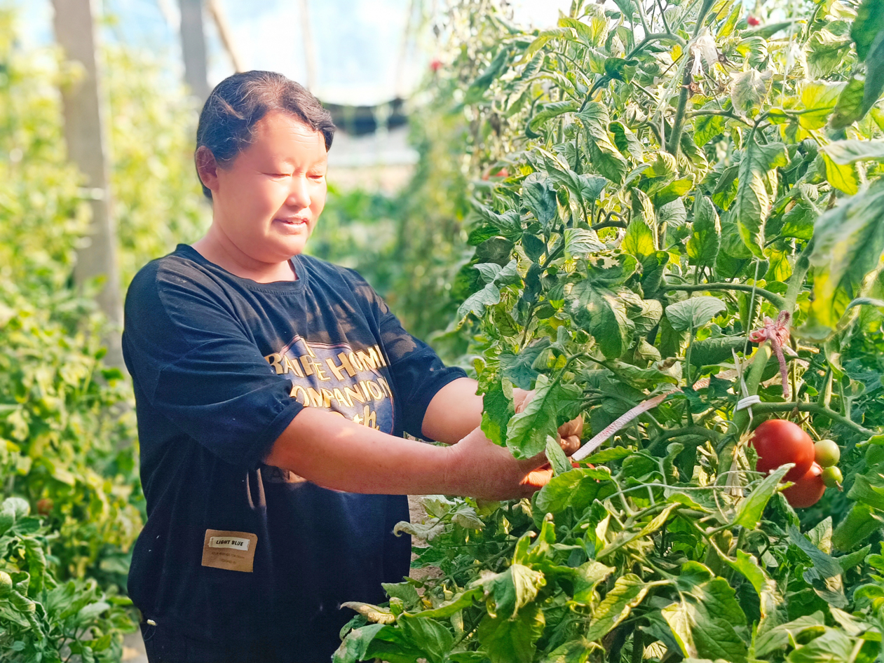 王洪东大哥说,现在棚里的西红柿因为口感好,有小时候“老底子”的鲜味,特别受欢迎,已经被各商场预定了不少。前几天气温低,陆陆续续来大棚采摘的村民也不少。他和妻子在不耽误地里农活、照顾家庭的基础上,实现了“夫妻双双把家还,增收致富一条心”的好日子。